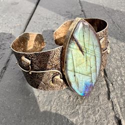 925 Cuff Bracelet Marquise Labradorite 44grams $200Lincolnwood, IL