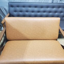 MidMid Century Modern Loveseat with Wood Frame and Camel Faux Leather. $175Bensenville, IL