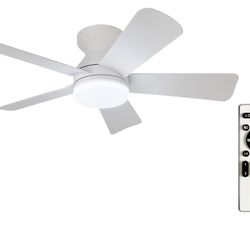 Depuley White Ceiling Fans with Lights: 5 Blade Modern Flush Mount Low Profile Ceiling Fan for Bedroom Porch - 35 Inch Indoor Outdoor Ceiling Fan with$35Lake Zurich, IL