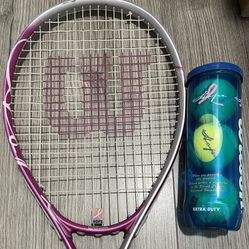 Wilson HOPE Breast Cancer Awareness Research Foundation Tennis Racquet Racket Pink 4 3/8” L3 Grip With 1 NEW HOPE Tennis Balls Can $30Buffalo Grove, IL