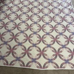 King Size Double Wedding Ring Style Quilt 84x96 Cotton Floral Bedspread$50Hoffman Estates, IL