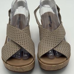 Journee Collection Kedzie Wedge Sandals 9.5 Taupe Faux Suede $40Normal, IL
