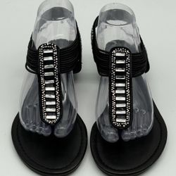 Madden Girl Triixie Black Rhinestone T-Strap Flat Sandals Women's Size 9 NWOT$30Normal, IL