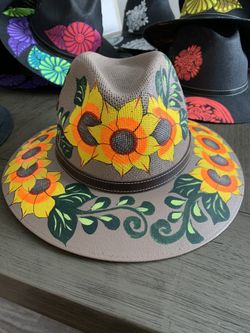 Ladies hat ,hand painted,sombrero ,Mexican clothes,huaraches ,Mexican party,loteria ,Frida Kahlo ,vestido mexicano ,Mexican dress,flowers ,painting ,$50Morris, IL