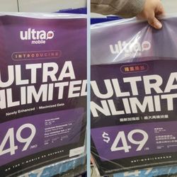 Ultra Mobile phone Dealer Window Store Sign Display 2 ENGLISH/CHINESE Unlimited $75Lansing, IL