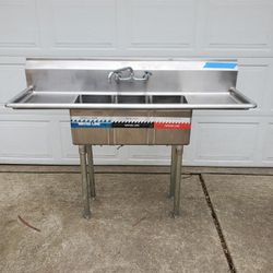 60" STAINLESS STEEL 3 COMPARTMENT SINK with FAUCET and DRAIN BOARDS $525Lombard, IL