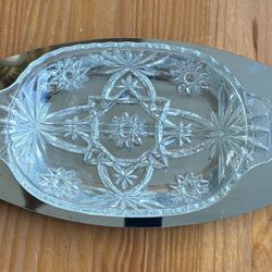 Crystal Serving Dish On Stainless Steel Tray $20Westchester, IL