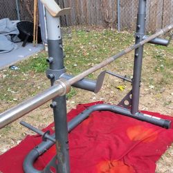 GOLD'S GYM OLYMPIC SQUAT RACK WITH 7' OLYMPIC BAR 45LBs WITH CLIPS