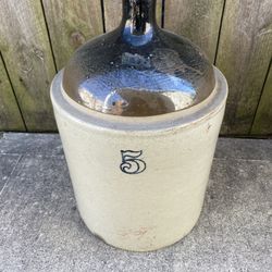 Antique Stoneware Crock 5 Gallon Jug Two Toned Brown & Cream With Handle$60Chicago, IL