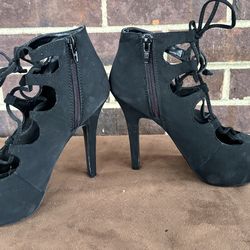 Black suede shoes high heel lace up$25Frankfort, IL