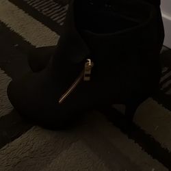 FIONI BLACK SUEDE SIDE ZIP-UP ANKLE BOOTIE HEELS SIZE 6.5$18Clarendon Hills, IL