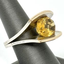 Vintage Tomasz Plodowski 925 Silver 14K Citrine Architectural Ring Size 7.75$350Palos Hills, IL