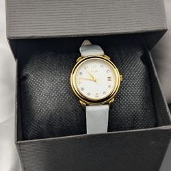 ✨⌚ Women’s Gold-Tone Timex White Dial Date Watch – White Strap⌚💛