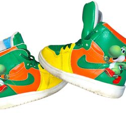 Nike Air Jordan 1 Mid Kids 12C Custom Hand Painted Yoshi Mario Sneakers !!!$80Romeoville, IL