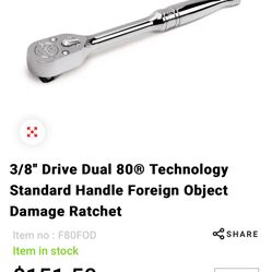Snap-on Tools 3/8" Drive Dual 80® Technology Standard Handle Foreign Object Damage Ratchet$80Aurora, IL