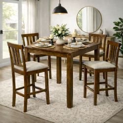 Contemporary Counter Height 5Pc Dining Set With Square Table And Cream Upholstered Chairs,$380Willowbrook, IL