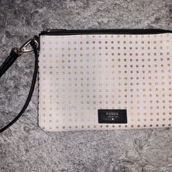 Fossil Womens White w/ Gold Polka Dot Zip Wristlet Purse Bag Wallet Clutch$8Chicago, IL