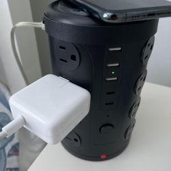 Tower power board surge protector, with 16 sockets and 5 USB ports (2 USB-C), 6-foot (about 1.8 meters) extension cable, with multiple sockets, heavy-$21Chicago, IL