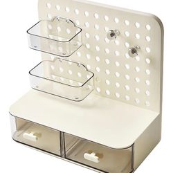 New! Pegboard Desk Organizer Simple Multifunctional Plastic Storage Rack with Drawers for Stationery Headbands Office Home Workspace (Cream Yellow)$20St. Charles, IL