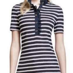 Tory Burch Womens Linen Blue White Striped Ruffle Collar Short Sleeve Polo Top S$30Chicago, IL