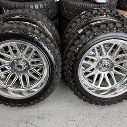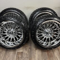 NEW 22 inch chrome new style snowflakes wrapped in 33x12.50r22 lancaster tires.$2,650Elgin, IL