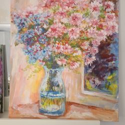 Blue and pink flowers with clear vase$142Lake Barrington, IL