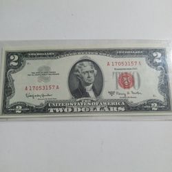 1963 A $2 Bill Red Seal Crisp Uncirculated $20North Aurora, IL