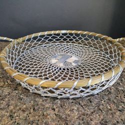 Metal Art Aluminum & Brass Basket Large 13" Woven weaved Bowl Wrapped Handles - Vintage $40Lake Barrington, IL