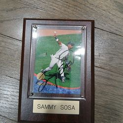 Autographed Sammy Sosa Baseball Card In Plaque MLB Chicago Cubs $100 OBO Or Trades For Music Gear$100Chicago, IL