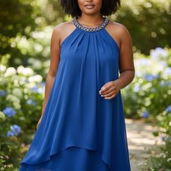 Elegant Blue Beaded Halter Dress | Size 20 | Flowy & Flattering$50Wheeling, IL