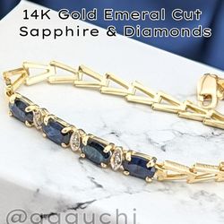 ✨💙💎14K Gold Emerald Cut Sapphire With Diamonds Bracelet 4.39g.| 7"|4mm💎💙✨$699Oak Park, IL