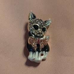 Silver tone kitten brooch with rhinestones & bow tie.$10Chicago, IL