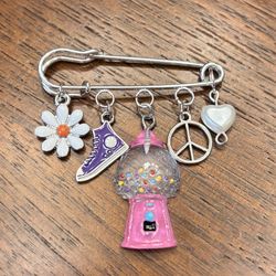 New Fun Whimsical Bubblegum Silver Tone Charm Pin Brooch $12Oswego, IL