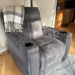 Luxury Gray Leather Theater Recliner Chair with LED Cupholders$350Round Lake Heights, IL