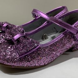 Lily & Dan girls size 1 purple shimmery glitter Mary Jane dress shoes with Velcro straps and accented with bows on the toes - perfect for Easter or w$15Stickney, IL