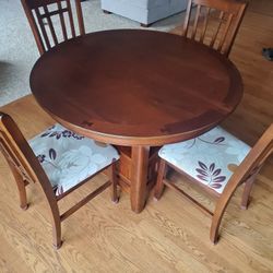 48" round table and 4 chairs, includes 18" removable leaf to make oval size of 66" like new. $400Huntley, IL
