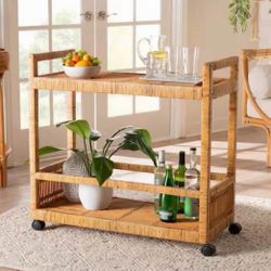 New Boho Bohemian Rattan Kitchen Butler Wine Storage Cart Table $120Elk Grove Village, IL
