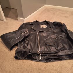 ICS Heavy Leather biker Jacket with fringe and silver embellishments$150Ind Head Park, IL