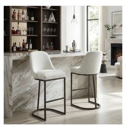 Ayane 29 in. White Metal Bar Stool with Boucle Seat 2 (Set of Included - New$120Chicago, IL