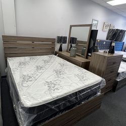 Queen Size Bedroom Set With Foundation Matress 2 Night Stands Dresser With Mirror Chester And 2 Lamps Included $1,200Bolingbrook, IL