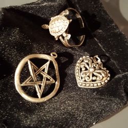 Sterling Silver Miscellaneous Lot A Turtle Ring And Two Pendants One Is A Five-star The Other Is A Heart Pendant All Are 100% Silver Authentic Silver$25Chicago, IL