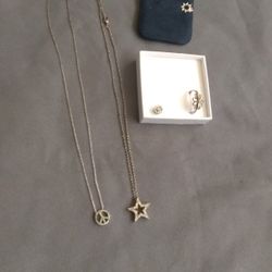 Sterling Silver Peace Sign Star Earrings And Ring The Two Clip On Earrings On The Blue Back AR Silver Plated$50Chicago, IL