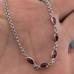 ✨♥️ Sterling Silver Bracelet with Deep Red Stones 3.45g.|7" ✨