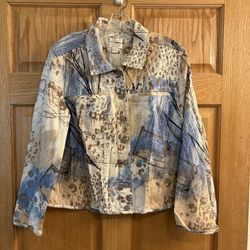 Christopher & Banks Women’s Denim Jean Jacket Large Beige Cheetah Print Abstract$18Hoopeston, IL