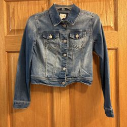 Wax Jean Blue Medium Wash Button Basic Denim Crop Jacket Stretch Women’s Size S $14Hoopeston, IL