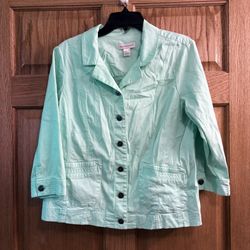 Christopher Banks Sz L Cotton Twill Stretch Seafoam Aqua Blue 3/4 Jacket Blazer $22Hoopeston, IL