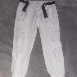 White Ripped Cargo Joggers with a Belt – 15x15 - Worn Once $15Urbana, IL