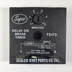 Supco Timing Relay TD-73 , 19-250V. AC/DC , Delay On Break , 6sec.-8min.$12Chicago, IL