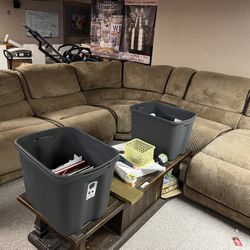 6pc Power Recliner Sectional with Chaise Lounge - Corduroy Top/Leather Base - Beige/Brown $250Park Ridge, IL