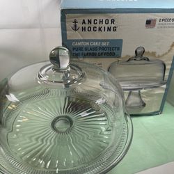 New Vintage Anchor Hocking Presence Pedestal Clear Cake Plate Stand w Dome Lid READ$60Chicago, IL